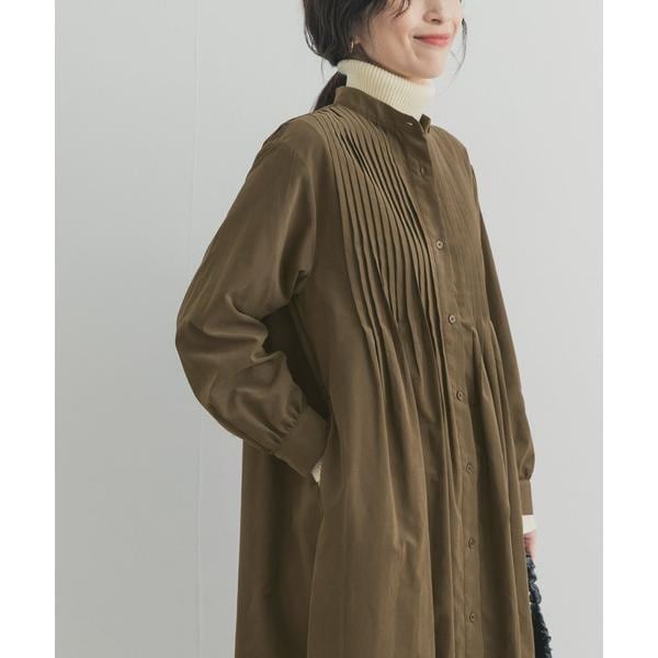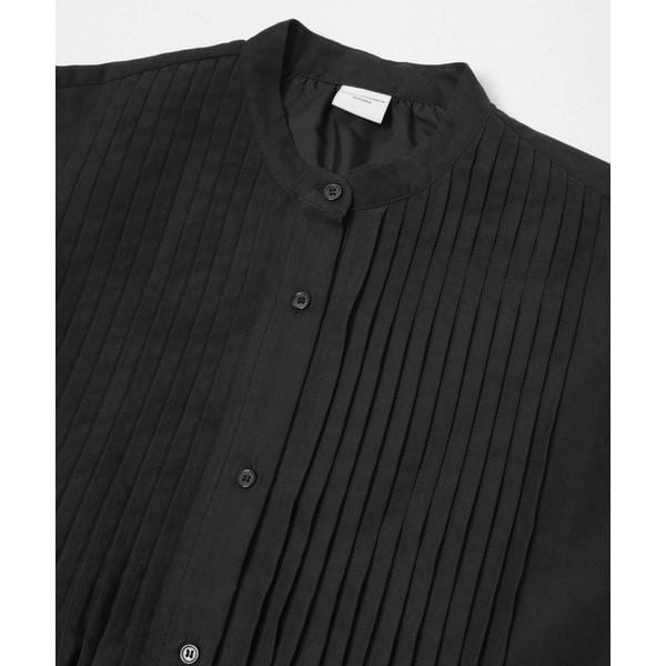 胸元には太めのピンタックを贅沢にあしらい、シンプルな中にも立体感のある表情をプラス。