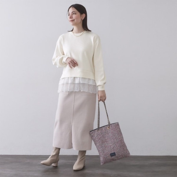 繊細なレースと布帛素材で大人っぽく華やぐ、デザインドッキングニット