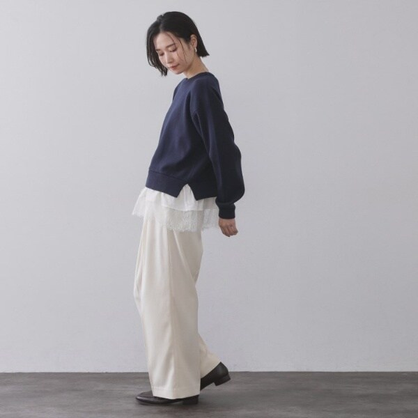 ・裾部分にはやや光沢のある布帛素材と、繊細なレース素材を使用。