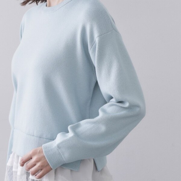 ・身頃はほどよいゆとりがあり、シンプルなクルーネックで合わせやすい一枚です。