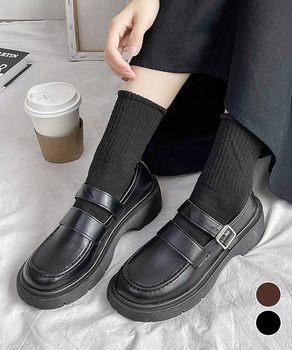 厚底ローファー ストラップパンプス