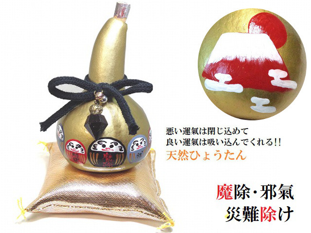 だるま金ひょうたん★魔除・生き霊・雑霊・死霊・邪気邪念・氣・波動・不運・厄・災難・開運招福★赤富士・王冠・ダイヤモンド★S★置き物★だるま★天然ひょうたん★風水★縁起物★パワーストーン★護符(霊符) ★ひょうたん★天然