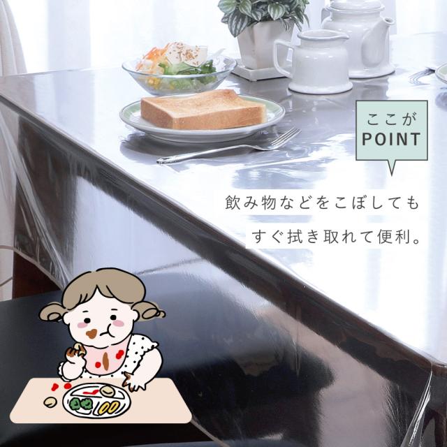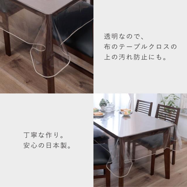 テーブルを傷や汚れから守る、日本製の透明マルチカバー。飲み物などをこぼしてもすぐ拭き取れ、お子さまがいらっしゃるご家庭にもとても人気があります。