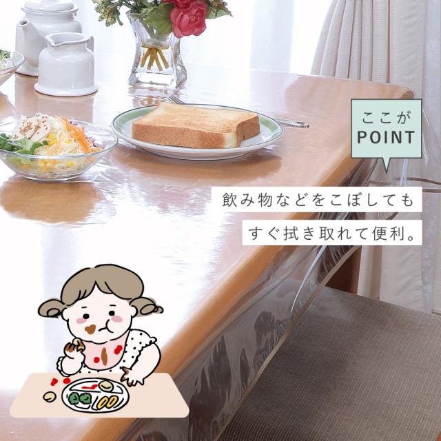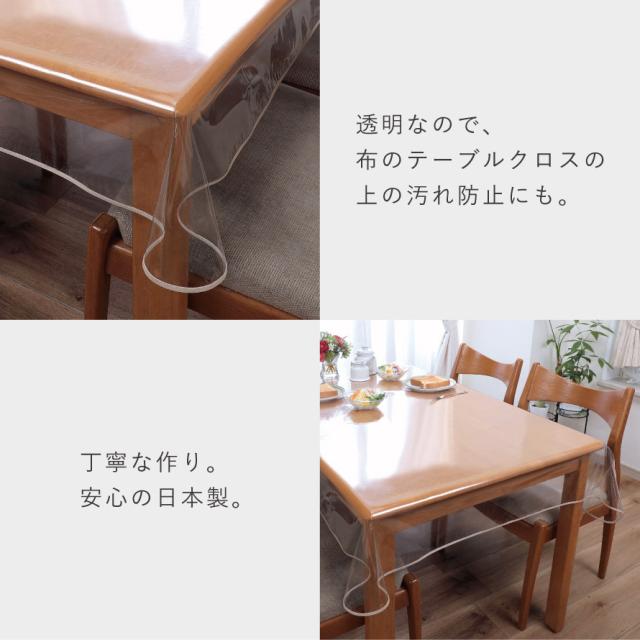 テーブルを傷や汚れから守る、日本製の透明マルチカバー。飲み物などをこぼしてもすぐ拭き取れ、お子さまがいらっしゃるご家庭にもとても人気があります。