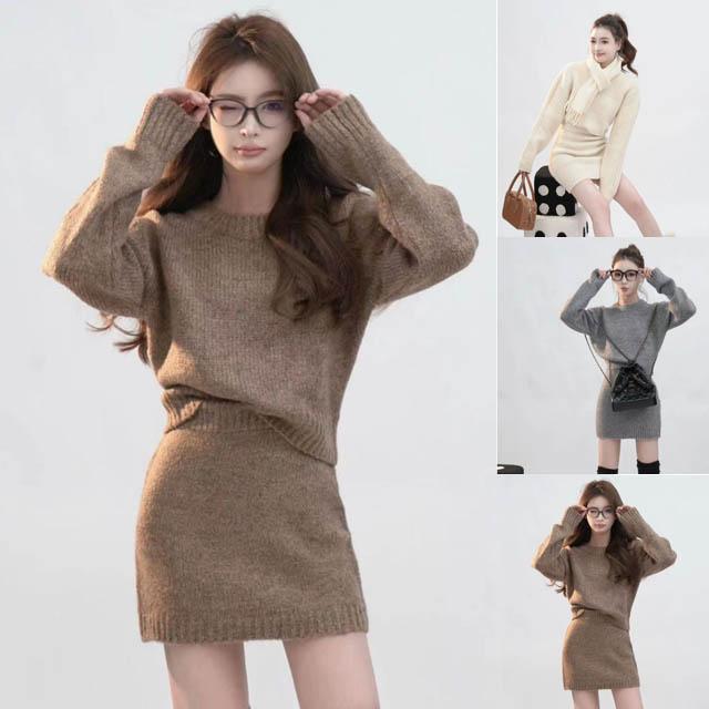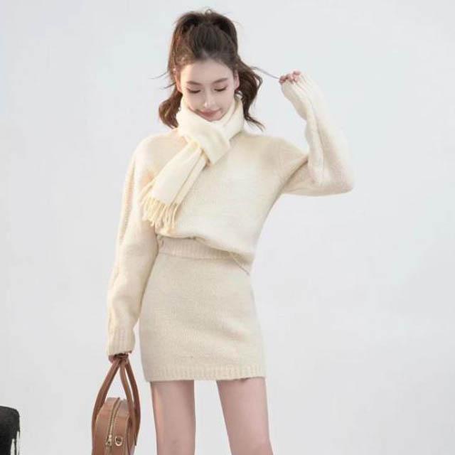 セットアップ ニットプルオーバー&ミニスカート 2点セット レディース ニット 春夏秋 3色/F