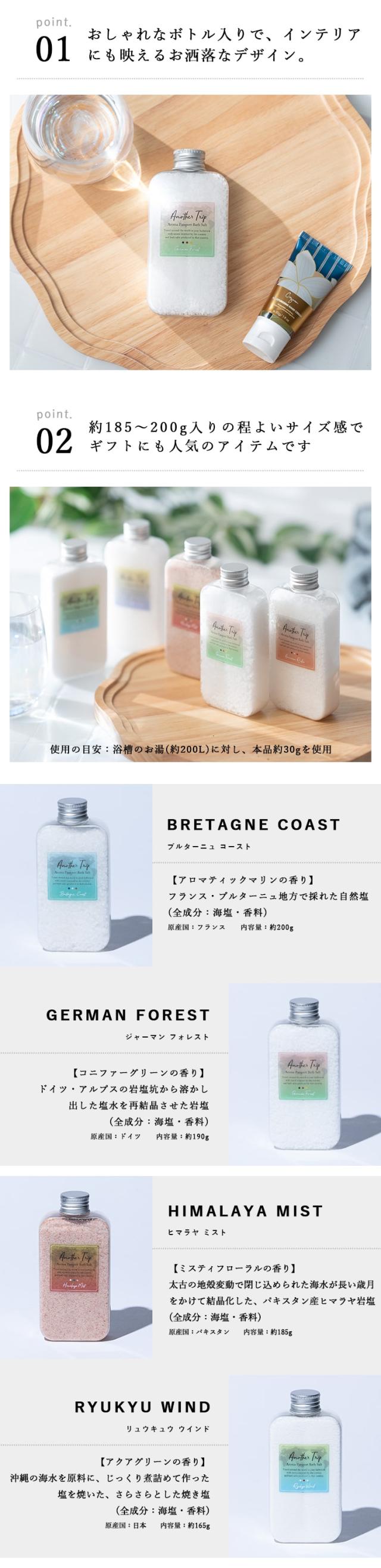 アナザートリップは、『バスルームから世界へ…香りで旅するバスソルト』がテーマのシリーズ。
