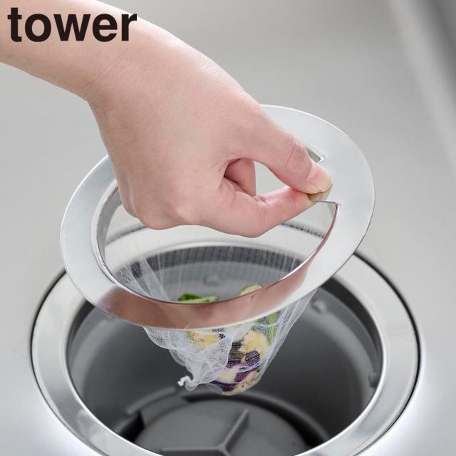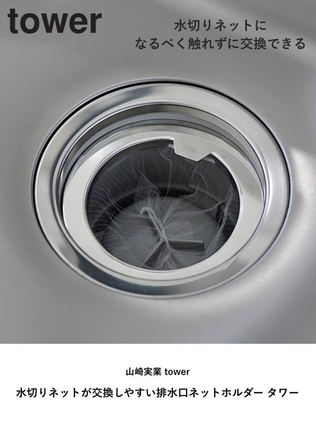 山崎実業 tower 水切りネットが交換しやすい排水口ネットホルダー タワー ( 4903208016940 タワーシリーズ 排水口ネットホルダー 排水口 排水口ネット 水切りネット 交換しやすい ごみ受け 水切り 排水 ネット シンク ステンレス )