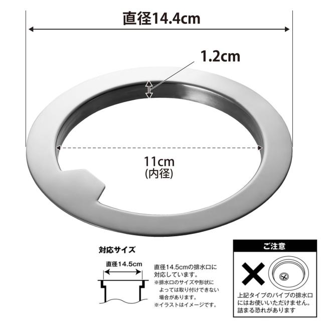 | 注意事項 | ※排水口のサイズや形状によっては取り付けできません。 ※水切りネットは付属していません。 |