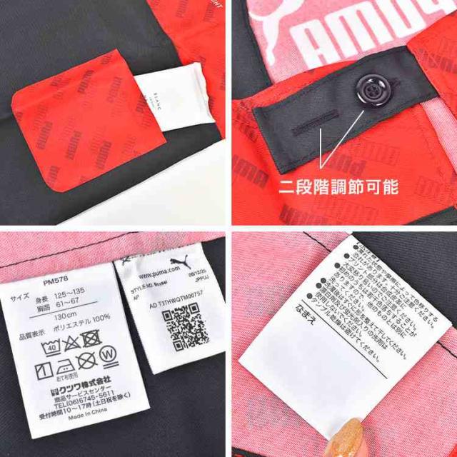 人気スポーツブランド『PUMA(プーマ)』のロゴがかっこいい、男の子用のキッズエプロン。紐を結ばなくてもよく、絡まりにくい背面Hタイプで被るだけで簡単に着脱できます。腰回りはボタンで2段階の調節が可能。小学生から中学生まで、身長に合わせて選べる4サイズ展開。汚れにくくシワになりにくいポリエステル100%です。