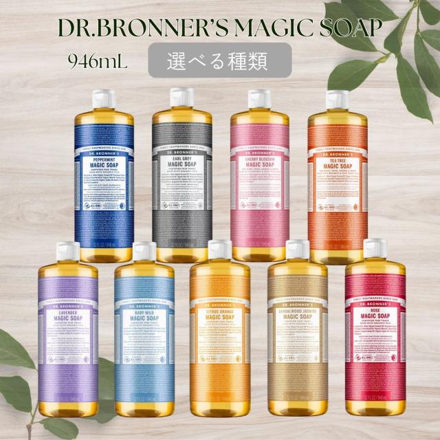 マジックソープ 946ml 1本 ドクターブロナー ベビーマイルド ラベンダー サンダルウッド ジャスミン シトラスオレンジ ローズ ペパーミント アールグレイ チェリーブロッサム ティーツリー 9種類 コストコ ボディソープ 大容量 選べる 種類 オーガニック