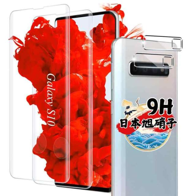 対応 Galaxy S10 ガラスフィルム 2枚 + フィルム 2枚 4枚セット 日本旭硝子製対応 Galaxy S10 SC-03L SCV41 フィルム 強化ガラス 液晶 保護フィルム 指紋認証対応 耐衝撃 飛散防止 高感度タッチ 指紋防止 自動吸着