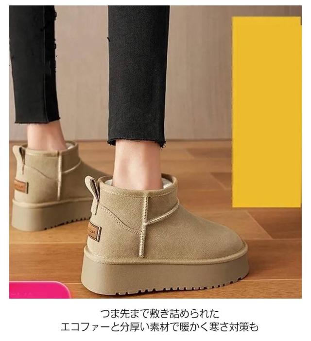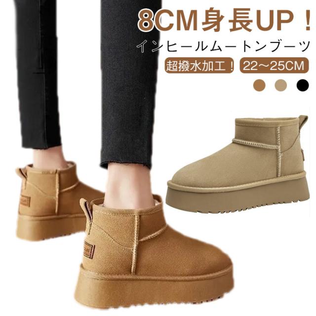 ムートンブーツ 8cm身長UP 撥水 ムートン 厚底ブーツ ムートン ブーツ ボアブーツ エコファー ブーツ インヒール ショートブーツ 厚底靴 フラットヒール 痛くない 防滑 保温 防寒靴 レディース 裏起毛 冬靴 秋 冬 靴 シークレットシューズ