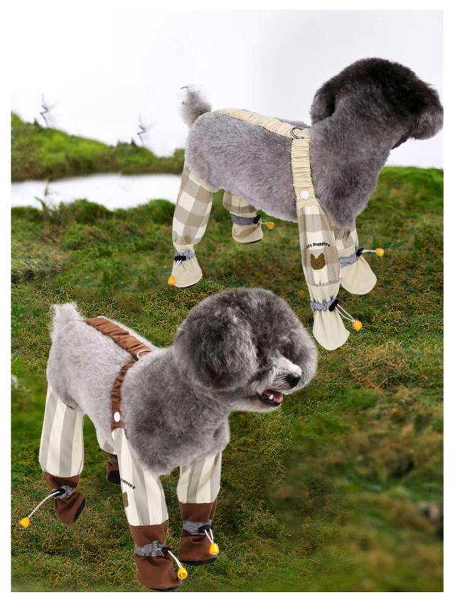 散歩 防水 犬用レッグカバー 脱げない 犬用ブーツ スペンダー付き犬用パンツ 滑り止め サスペンダー付き 犬服 屋外四本足パンツ 肉球保護 汚れ防止 梅雨 レインパンツ 調節可能 お出かけ 脱げない 犬の靴 レギンス 犬用シューズ 犬レインシューズ