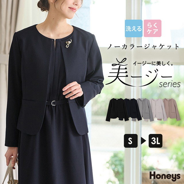 アウター ジャケット ノーカラージャケット セットアップ セレモニー 大きいサイズ オフィス きれいめ レディース Honeys ハニーズ ノーカラージャケット