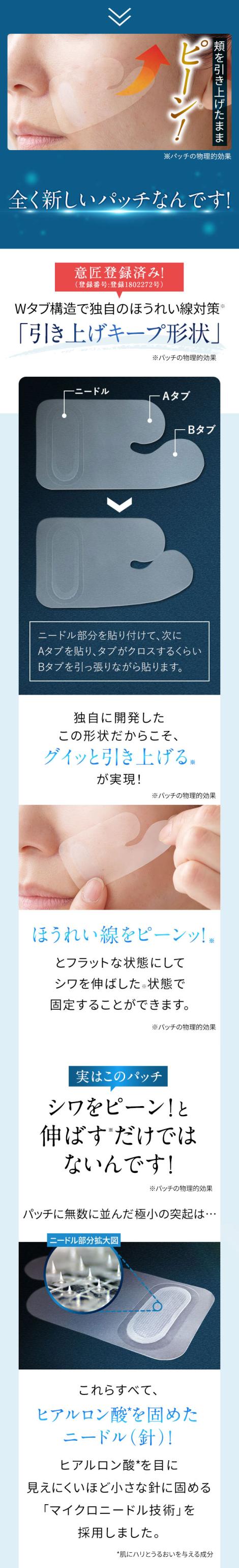 特殊な形状を持たせた新発想のパッチが、肌に密着して頬のお肉をリフトアップ※。