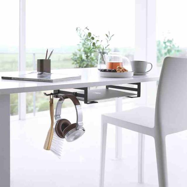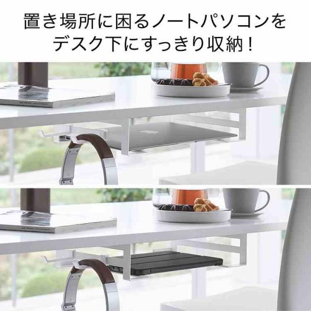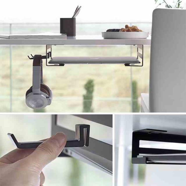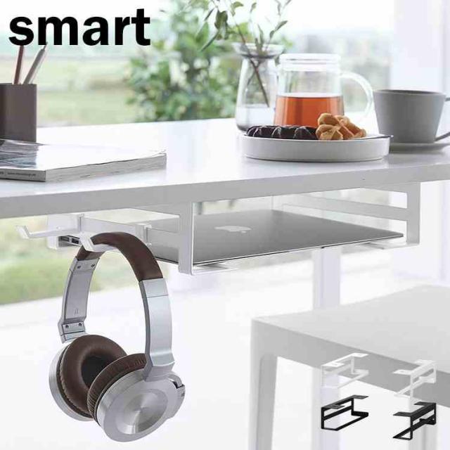 山崎実業 デスク下ノートパソコン収納ラック スマート smart 10424 10425 ホワイト ブラック テーブル下 収納 デスク ノートPC タブレット テーブル裏 リモートワーク 在宅勤務 机 増設 天板裏 ラック 便利 シンプル スタイリッシュ おしゃれ 下棚 隠し収納 トレイ ネジ固定