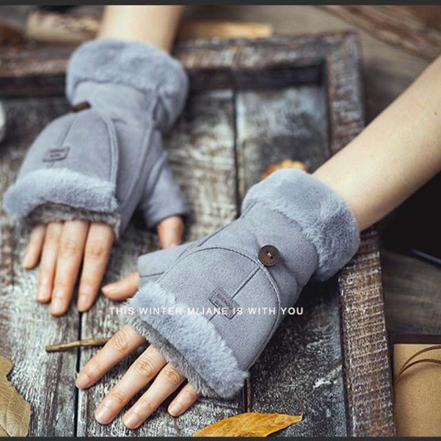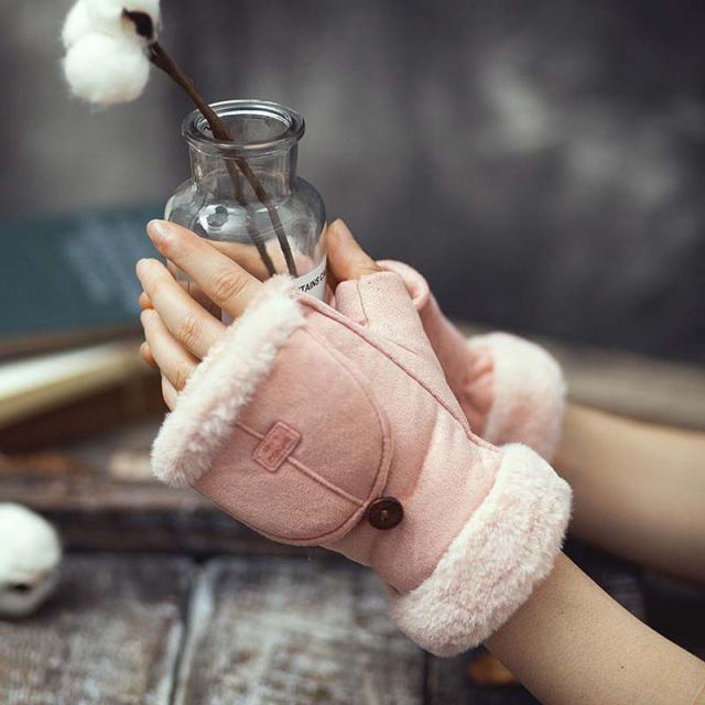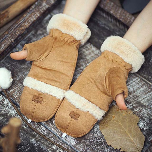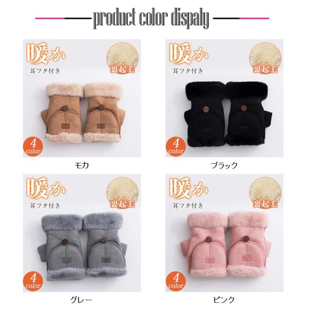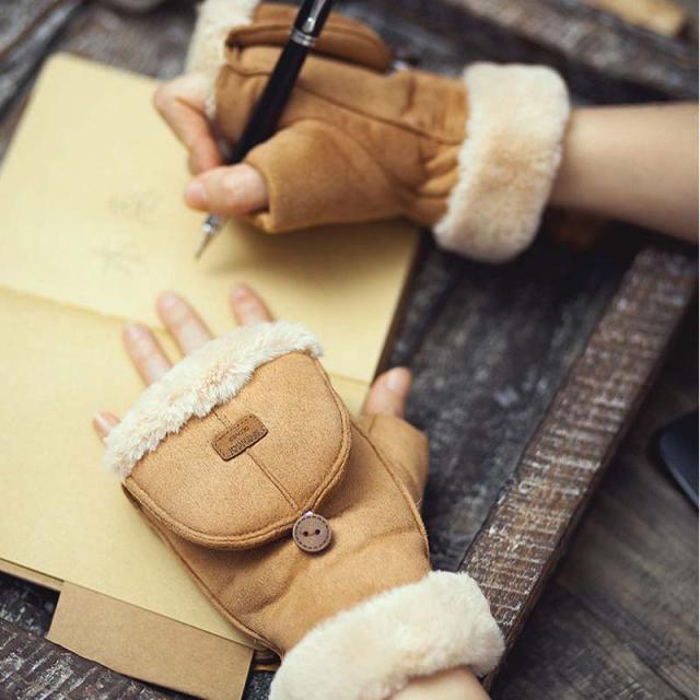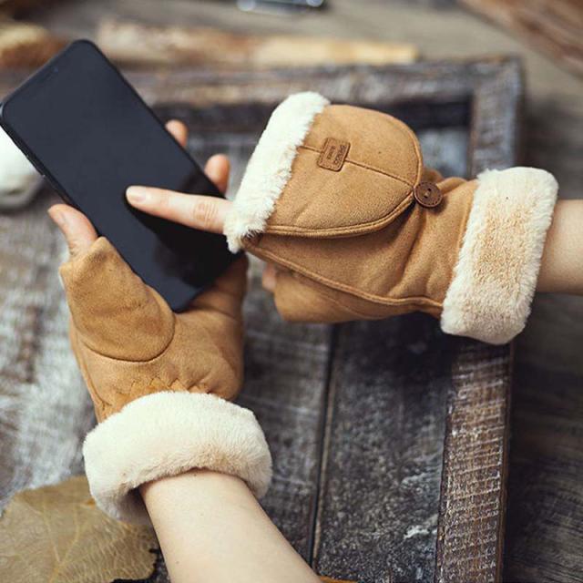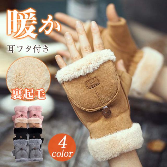 手袋 レディース 冬 全指/半指カバー 暖かい スマホ 手ぶくろ 防寒 防風 保温 裏起毛 寒さ対策 黒 ファー ボア 手首 秋 スエード風