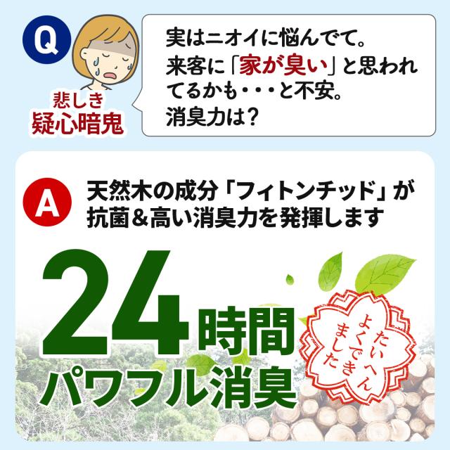 また天然木の香りは消臭効果も抜群で、「いや〜な匂い」も気にならなくなります。