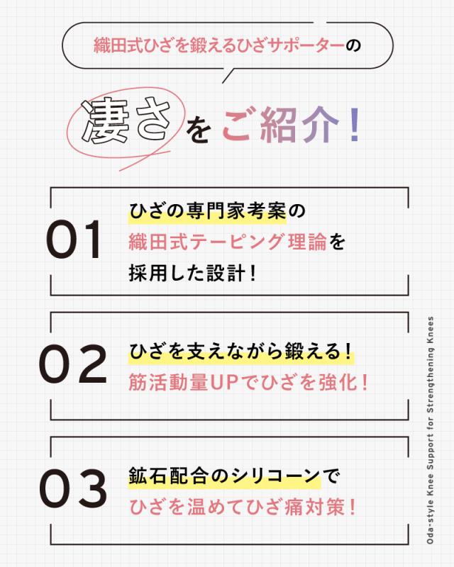 ひざ専門家監修の「織田式テーピング理論」を取り入れた新発想サポーター。