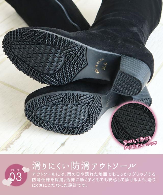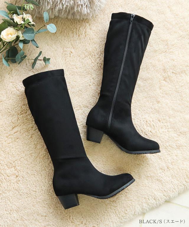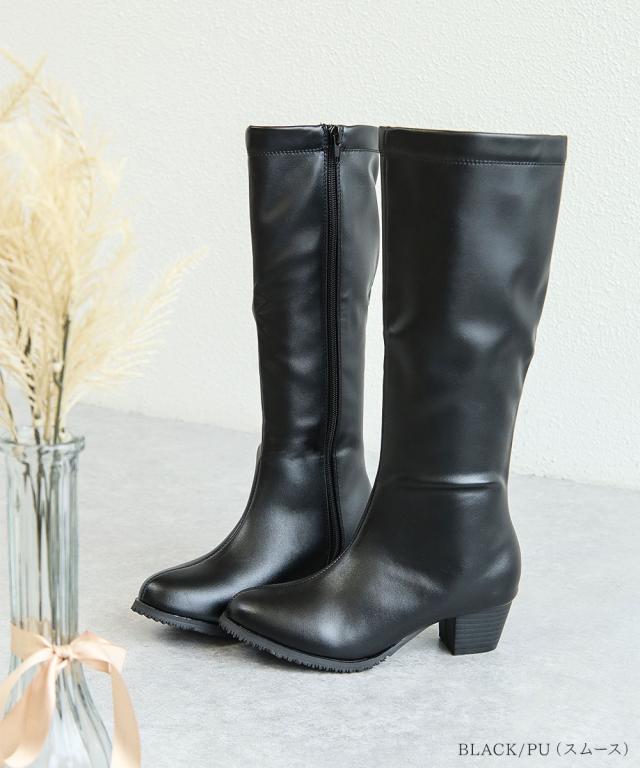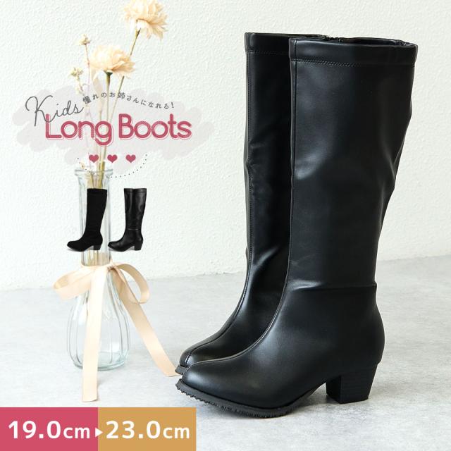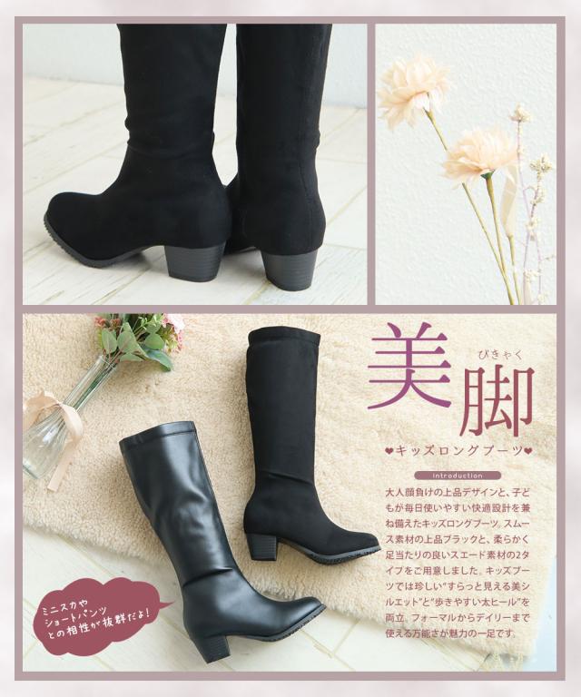 キッズブーツ 子供靴 女の子 ロングブーツ 黒 フォーマル 発表会 入学式 卒園式 結婚式 お出かけ 19cm 20cm 21cm 22cm 23cm 秋冬 太ヒール 歩きやすい 滑りにくい スムース スエード シンプル 可愛い おしゃれ 通学 防寒 上品 プレゼント ギフト