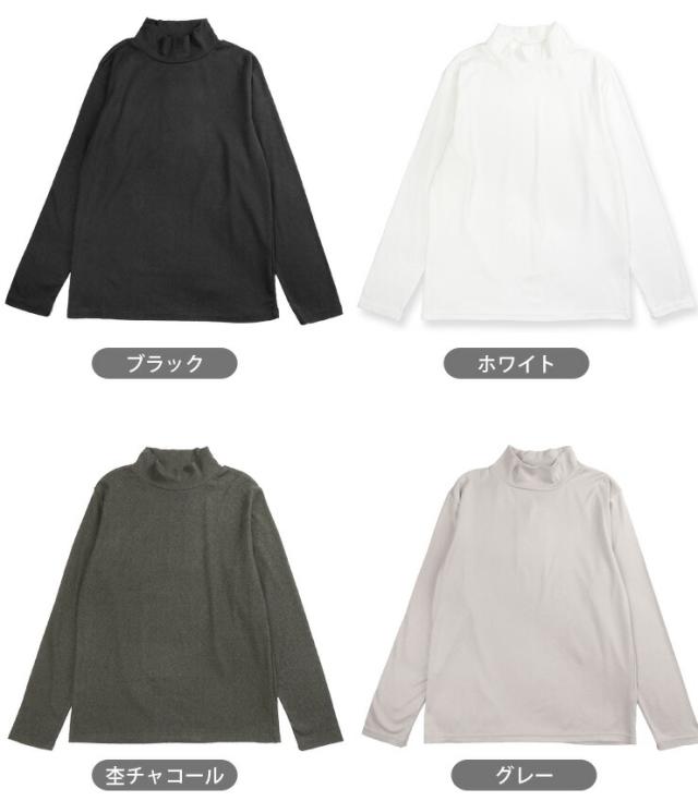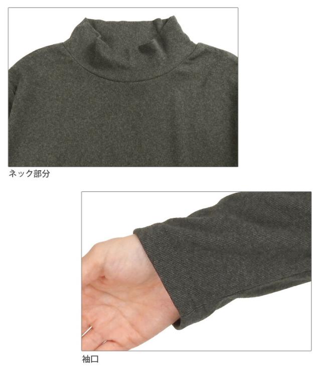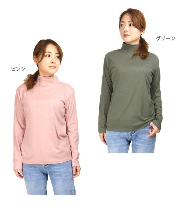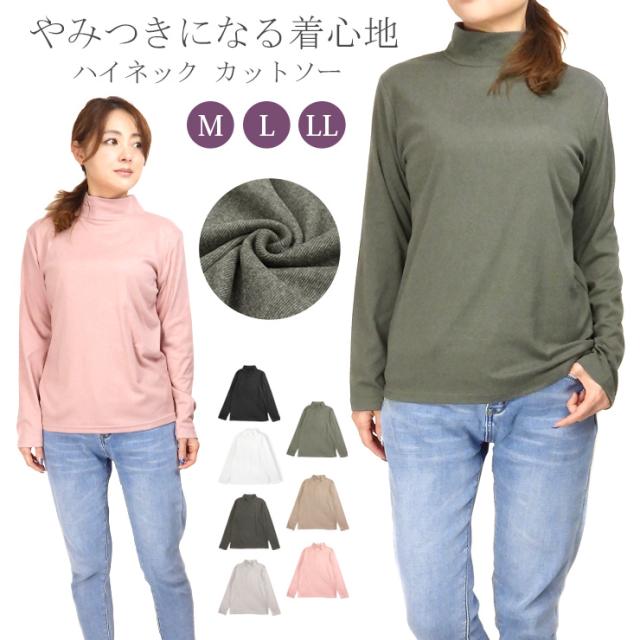 やみつきタッチ フライス ハイネック 長袖 カットソー レディース M L LL 82594 ブラック ホワイト 杢チャコール グレー グリーン モカ ピンク 無地 トップス アンダー インナー Tシャツ【大きいサイズあり】メール便送料無料 3088