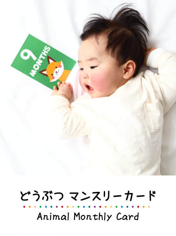 カラフルな動物が可愛いベビーアルテオリジナルマンスリーカード。
