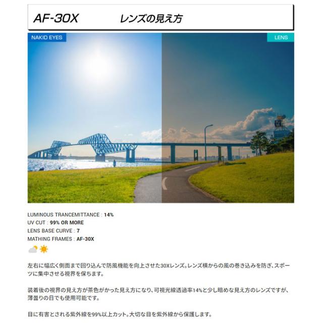 ノーズパッドのないスポーツサングラス「エアフライ」。このエアフライの新たなフラッグシップモデルとして『AF-30X』が誕生しました。これまでのモデル開発にて蓄積された独自ノウハウと、開発初期から多くのトップアスリートへの着用と多くのフィードバックを受けて改良を重ね完成した【MADE IN SABAE JAPAN】のスポーツサングラスです。ノーズパッドのない広い視界と絶妙なフィット感でストレスのない掛け心地を実現します。