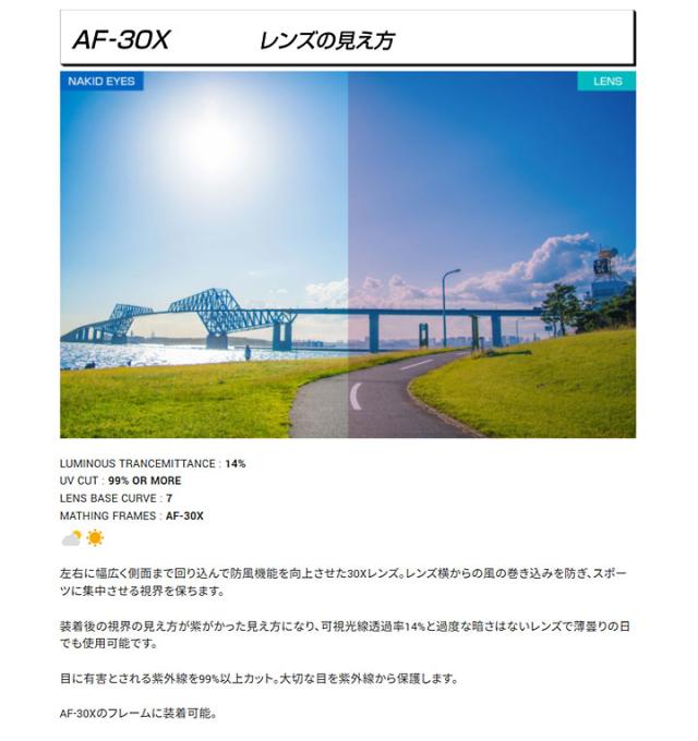 ノーズパッドのないスポーツサングラス「エアフライ」。このエアフライの新たなフラッグシップモデルとして『AF-30X』が誕生しました。これまでのモデル開発にて蓄積された独自ノウハウと、開発初期から多くのトップアスリートへの着用と多くのフィードバックを受けて改良を重ね完成した【MADE IN SABAE JAPAN】のスポーツサングラスです。ノーズパッドのない広い視界と絶妙なフィット感でストレスのない掛け心地を実現します。