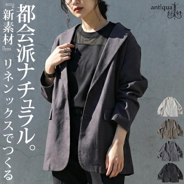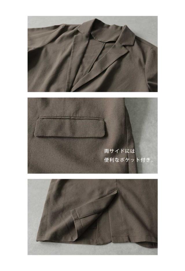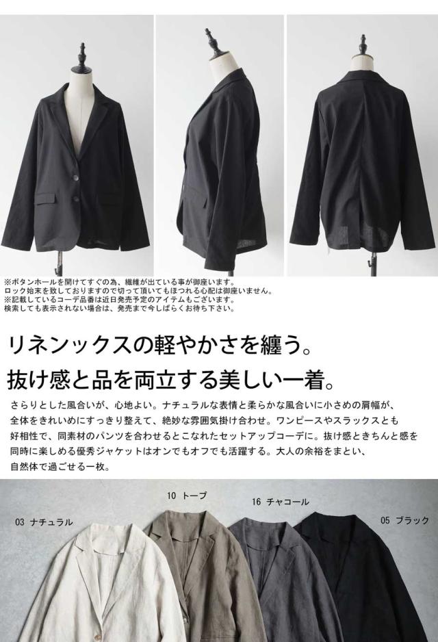 yp-00197 テーラードカラー リネン 麻 ブレンド ライトアウター 羽織り きれいめ オフィス カジュアル 通勤 セットアップ 体型カバー 前開き フロントボタン シングル ポケット付き