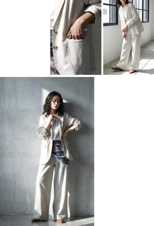 リネン(麻)ブレンドの柔らかな風合いを活かしたテーラードジャケットです。