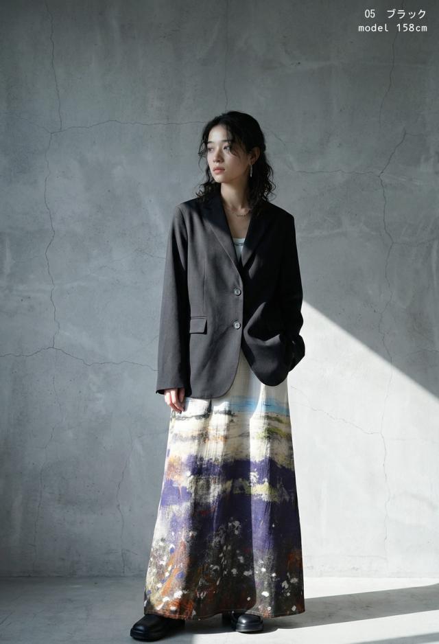 左右には便利なポケット付きで実用性も確保し、同素材のパンツ・スカート・サロペットと組み合わせればセットアップとして統一感ある装いが完成します。