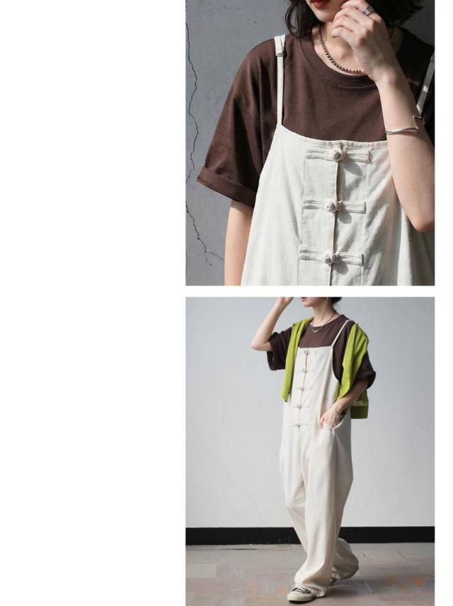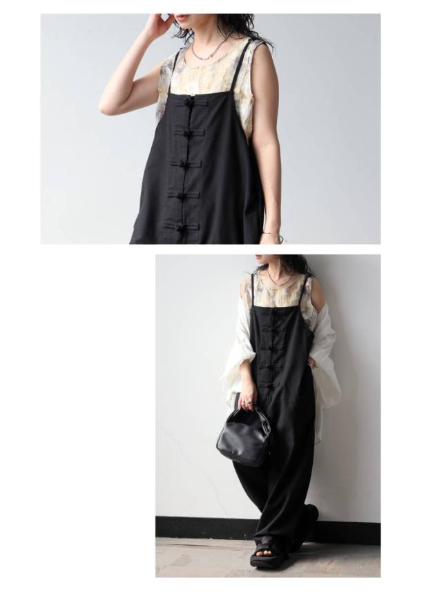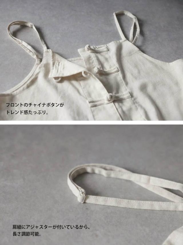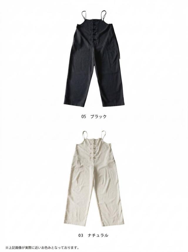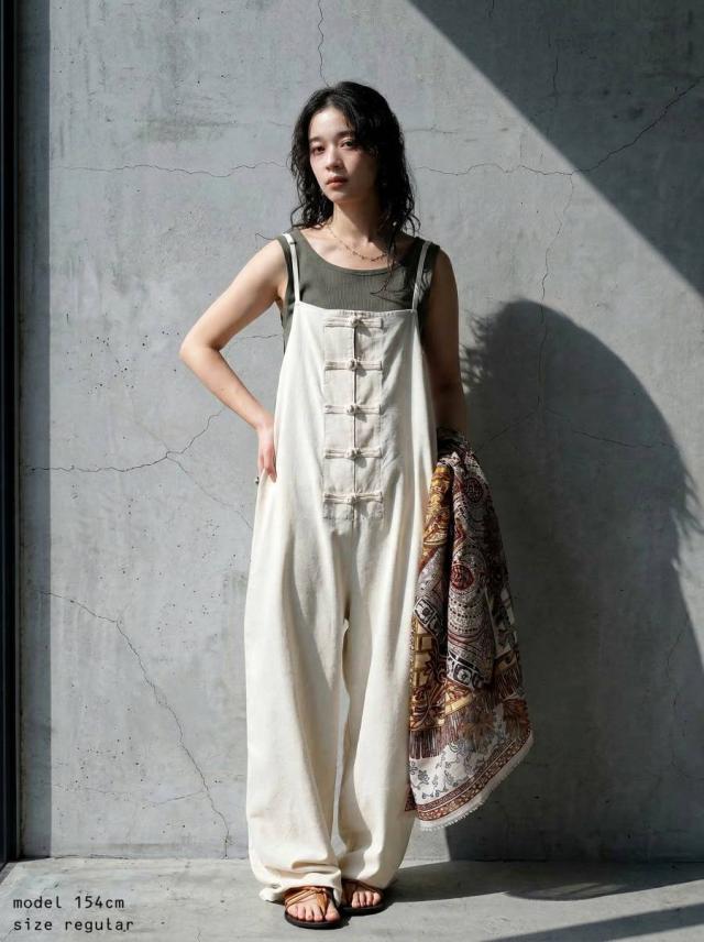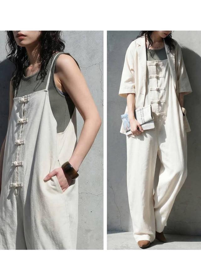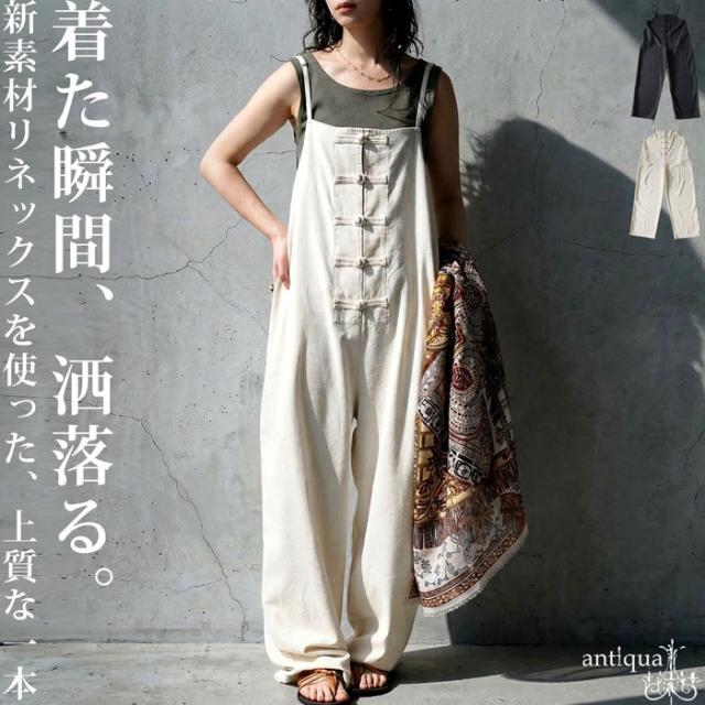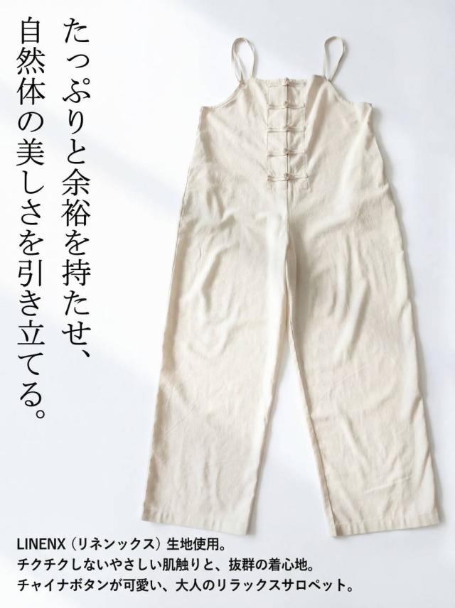 サロペット レディース チャイナボタン ワイド リネン風 送料無料・メール便不可 春新作