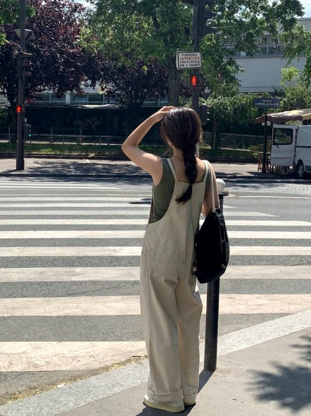ナチュラルな風合いが魅力の麻混素材で仕立てたサロペットです。