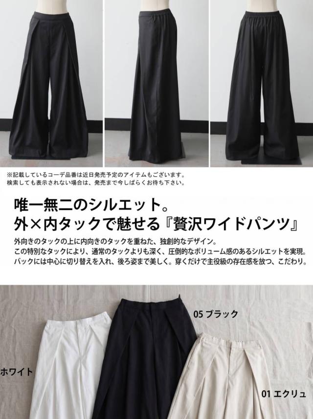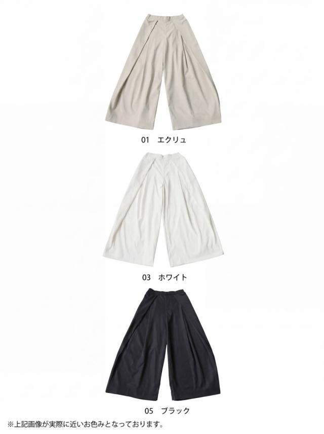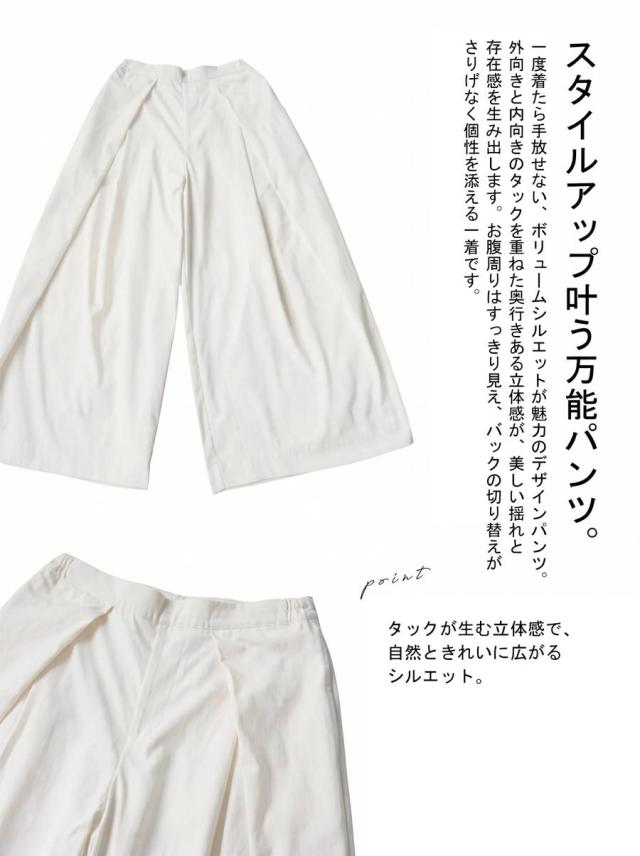 pk-01402 ボトムス タック ワイドパンツ ウエストゴム 体型カバー リラックス イージー らくちん ルーズ 無地 ポケット付き 上品見え 大人カジュアル シンプル モード 美シルエット