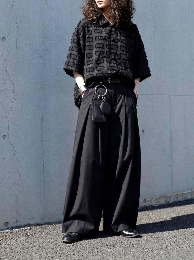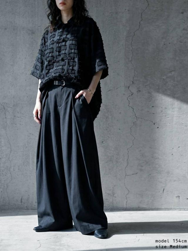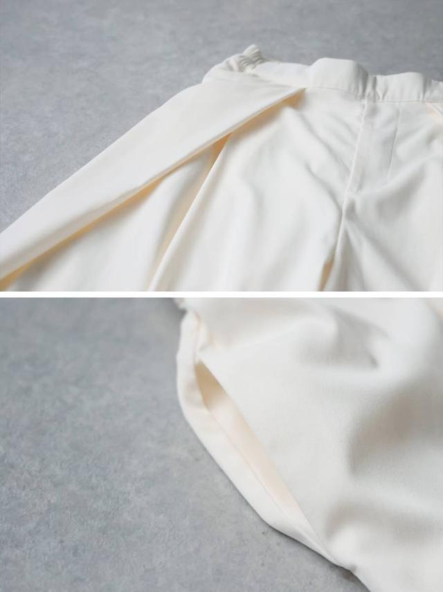 フロントに施されたタックが立体的なシルエットを生み、上品で洗練された印象に導きます。