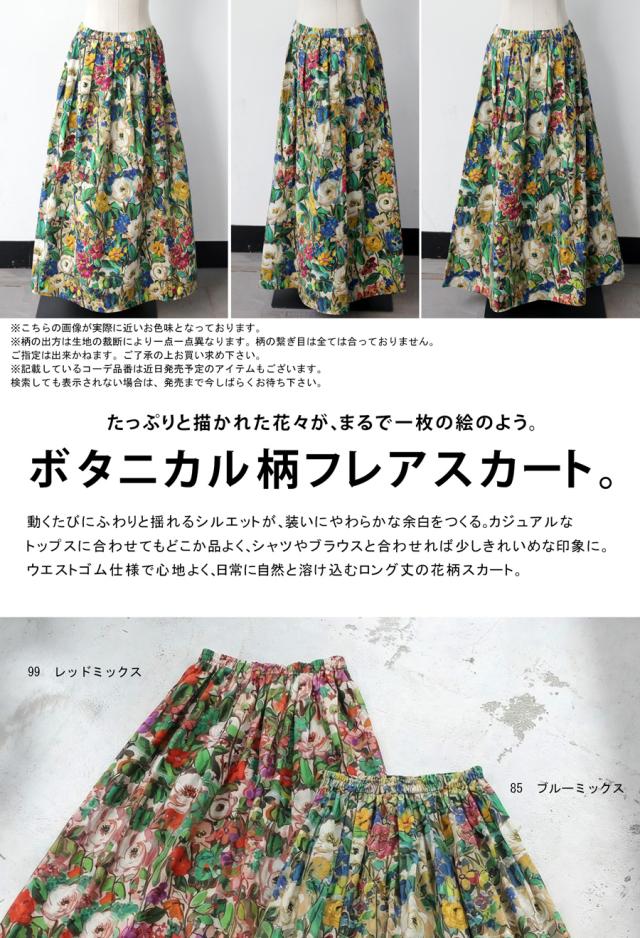 pk-01403 総柄 フレアスカート マキシ丈 ウエストゴム タックデザイン ボタニカル コットン100 大きい ゆったり ワイド 体型カバー リラックス きれいめ カジュアル 上品 華やか