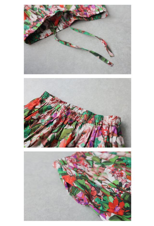 柄は甘くなりすぎないボタニカル柄で、カラフルな配色ながらも奥行きのある表情に仕上げました。