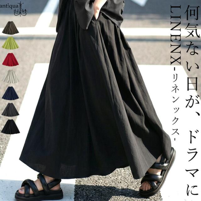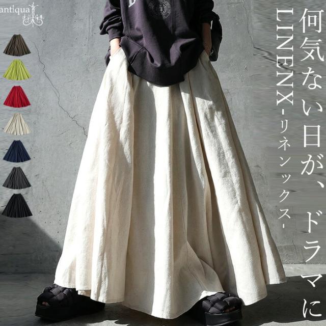リネン混 ロング スカート レディース Aライン 送料無料・メール便不可 春新作