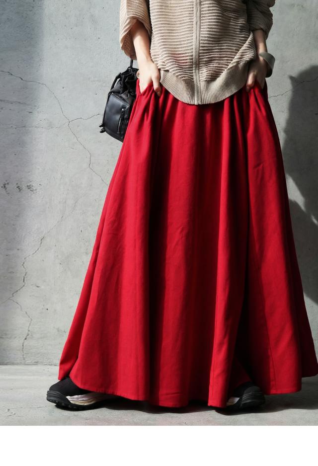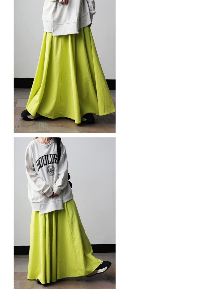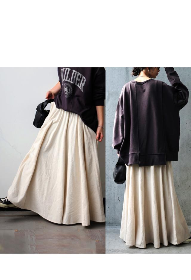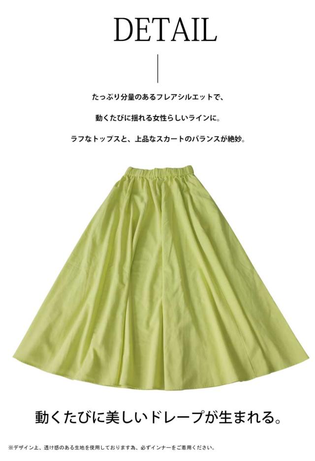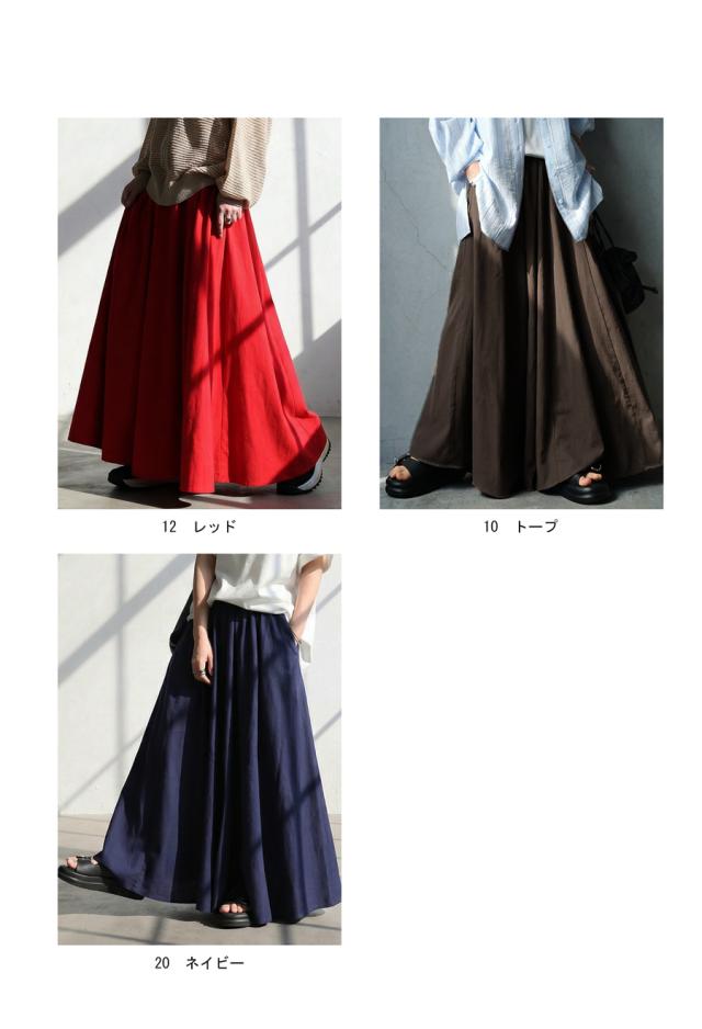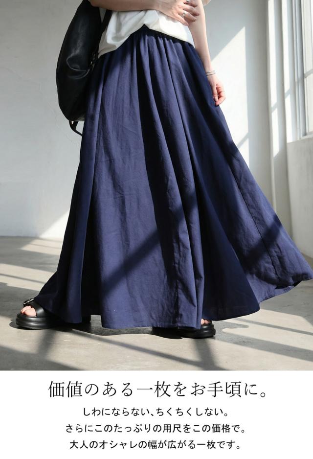 ay-00088 フレアスカート マキシ丈 ウエストゴム 麻混 ドレープ 軽やか 体型カバー ゆったり ボトムス 無地 シンプル 上品 カジュアル モード ナチュラル きれいめ 総ゴム ギャザー