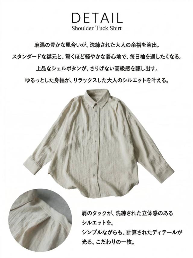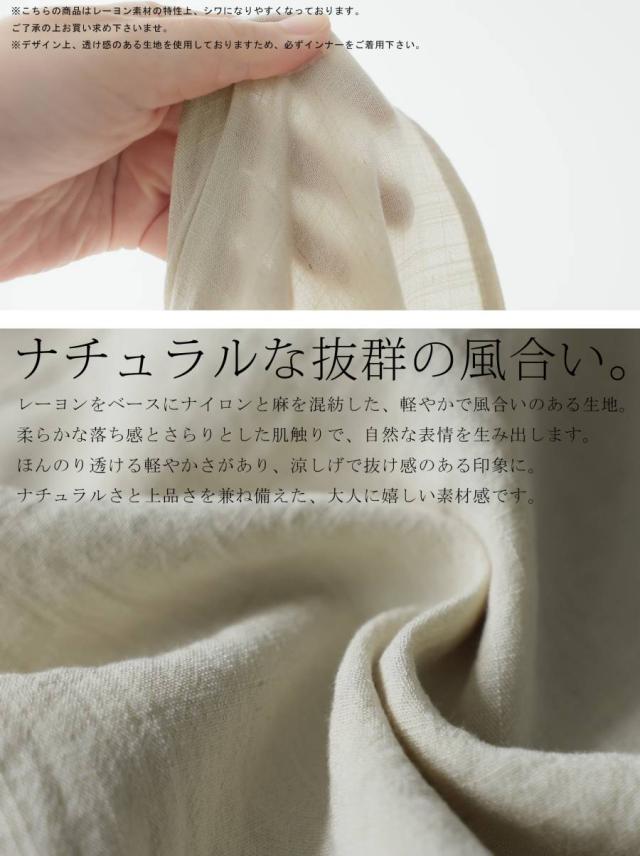 レーヨンをベースにリネン混(麻混)素材を使用し、軽やかな肌触りと自然な落ち感を叶えました。