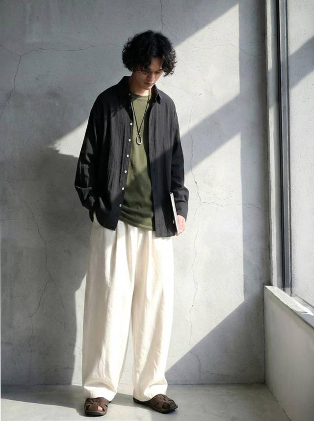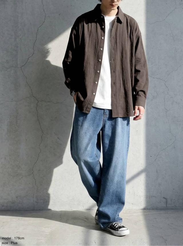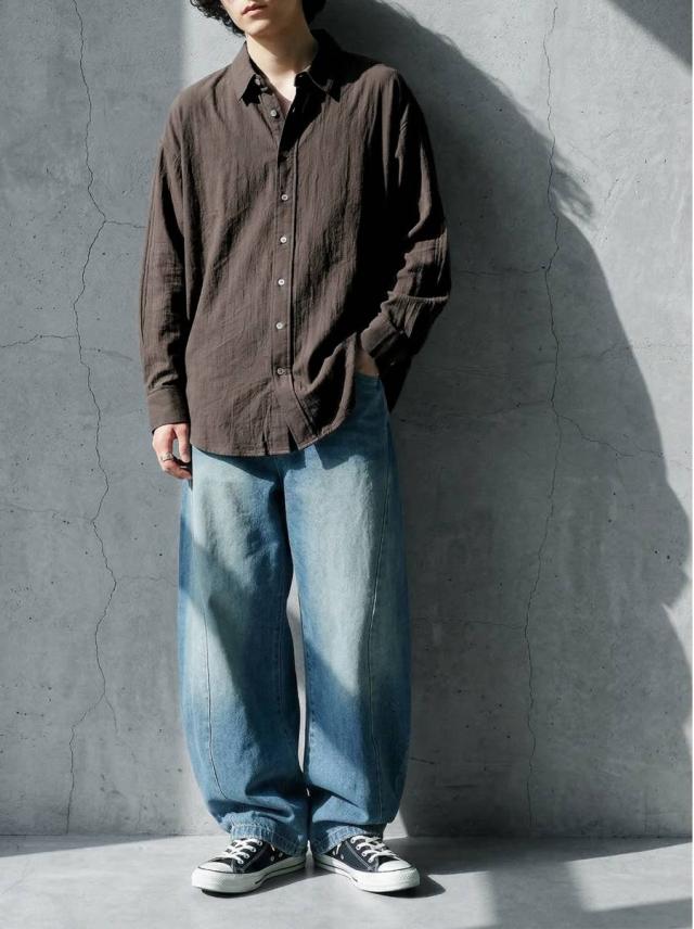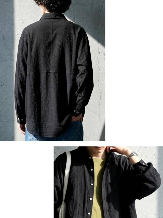 シャツとしてはもちろん、軽い羽織りとして重ね着にも使いやすく、デイリーコーデの幅を広げてくれる一着です。