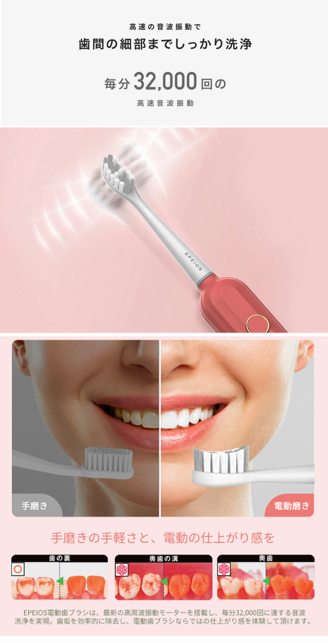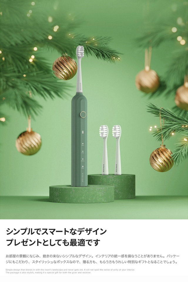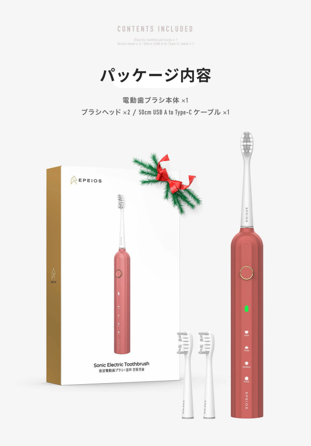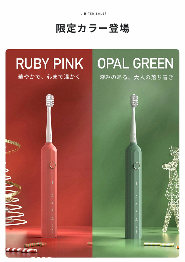 EPEIOS 電動歯ブラシ クリスマス限定カラー ルビーピンク/オパールグリーン 音波振動歯ブラシ IPX7防水 丸洗い 180日間使用 Typc-C充電 静音 歯垢除去 電動歯磨き デンタルケア 新生活 クリスマス プレゼント 贈り物 新年 ギフト
