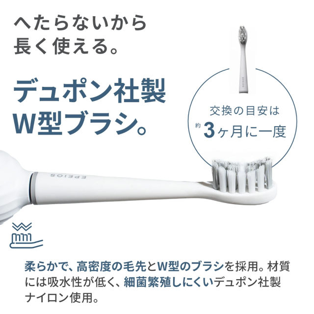 【ブラシヘッド】デュポン社製の柔らかく高密度なブラシ