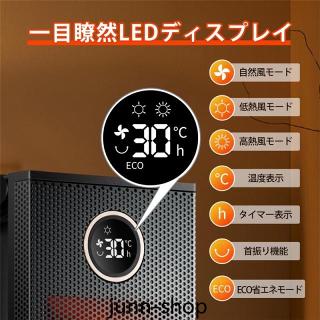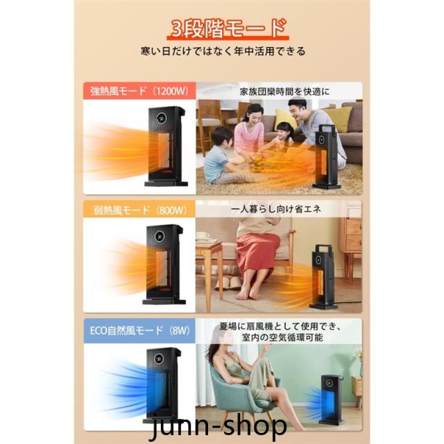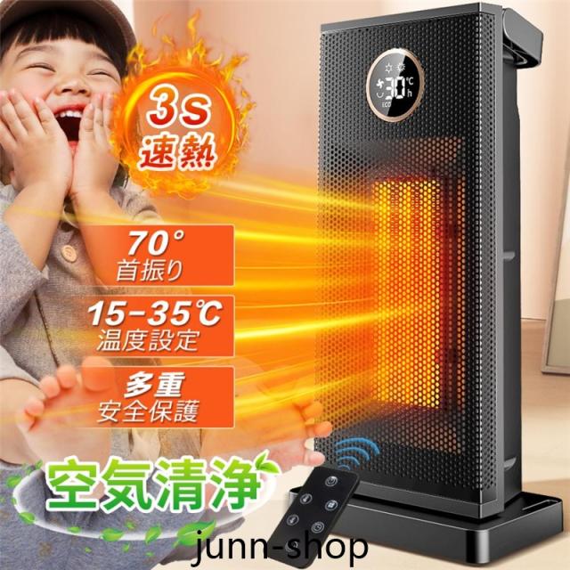 セラミックヒーター ヒーター スマートサーモスタット機能 電気ストーブ 3秒速暖 省エネ 足元ヒーター 首振り 大風量3つモード 1200W PSE認証 切タイマー リモコン付き 暖房器具 脱衣所 脱衣場 お風呂場 洗面所 トイレ オフィス 防寒対策