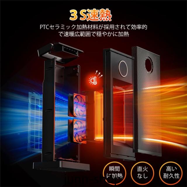 【高効率・圧倒的速暖】PTCセラミック発熱体を採用することで、電熱転換率を向上させ、素早く加熱でき、電気式なので、コンセントを差し込んで、強温風モードを選択して3-8秒間に暖かくなります!肌寒さを感じた時や、朝起きや、キャンプ泊や、帰宅など、長まるまでの時間が短く、冷え性の女性や、すぐに暖まりたい人におすすめ!