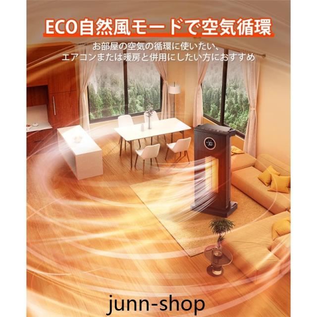 【3段階出力・70°首振り】自動首振り機能付き、左右35°首振り、本体を動かさなくても広く暖めます。強温風・弱温風・ECO自然風を自由切り替えることができます。
