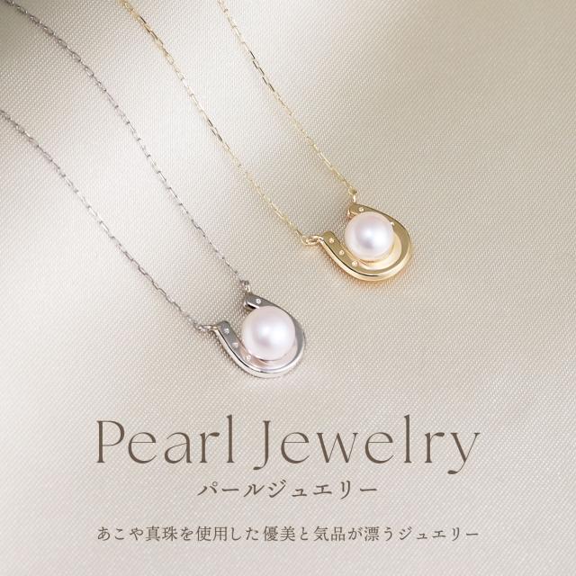 こちらは、幸運を呼び込むモチーフとして人気の高い馬蹄(U字)デザインに、希少なあこや真珠を添えた ネックレスです。端正に描かれたU字ラインの中央に、凛とした存在感を放つパールをセッティング。上質な地金の艶とパールの柔らかな光沢が重なり、胸元に清楚で上品な印象をもたらします。