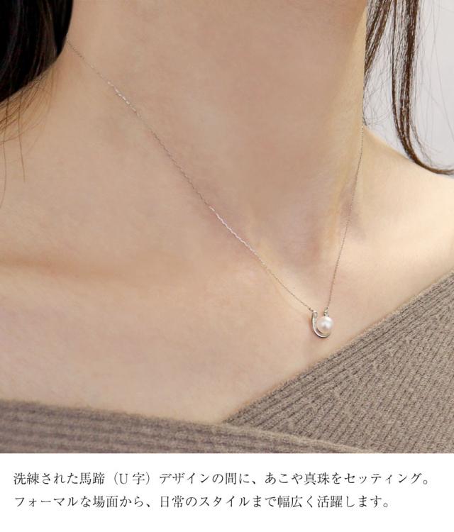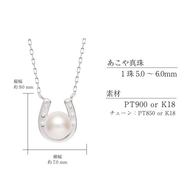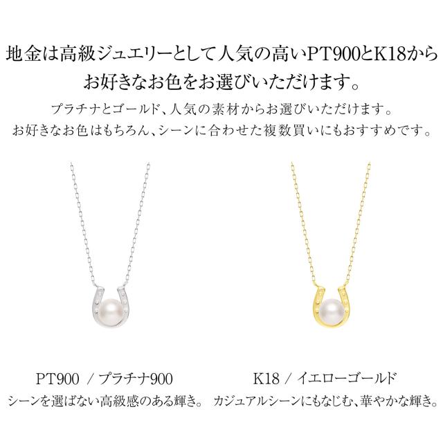 ネックレス レディース あこや真珠 パール 5.0〜6.0mm PT900 K18 馬蹄 U字 ララクリスティー