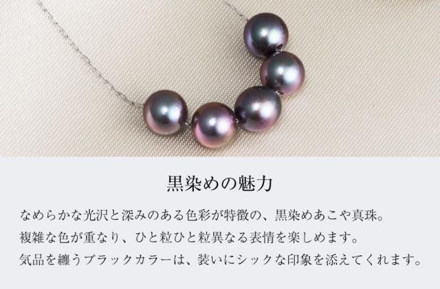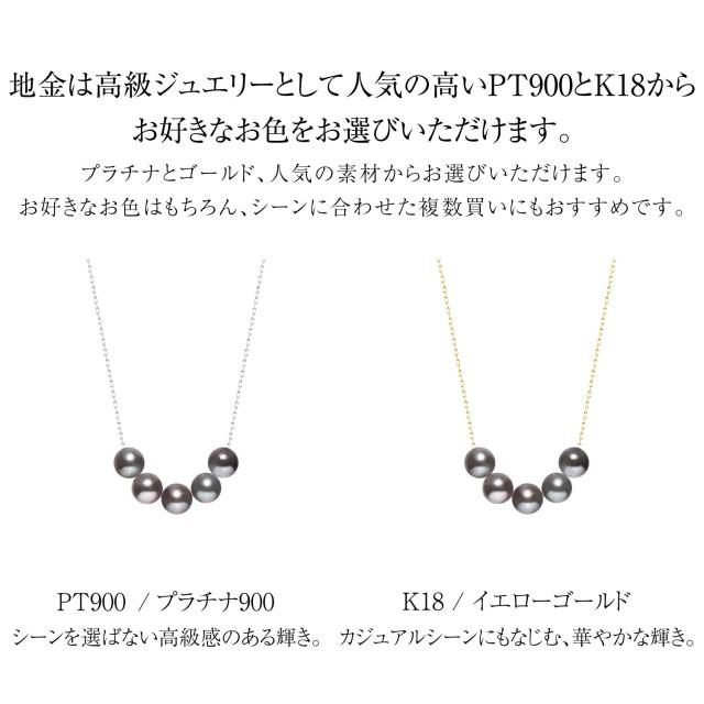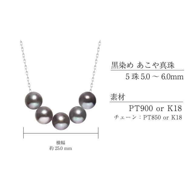 ネックレス あこや真珠 染め 黒 パール 5.0〜6.0mm 5珠 PT900 K18 スルーネックレス ララクリスティー