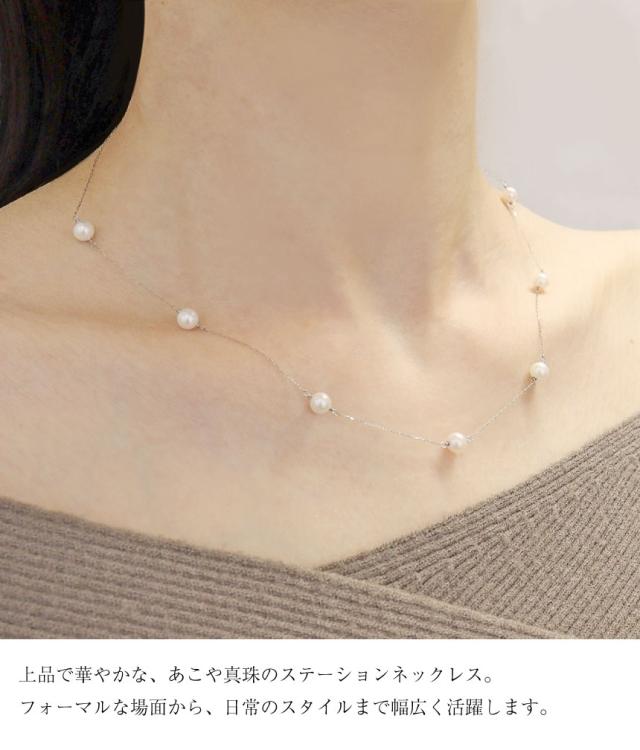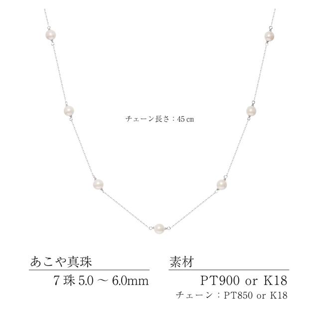 ネックレス レディース あこや真珠 パール 5.0〜6.0mm PT900 K18 ステーションネックレス ララクリスティー